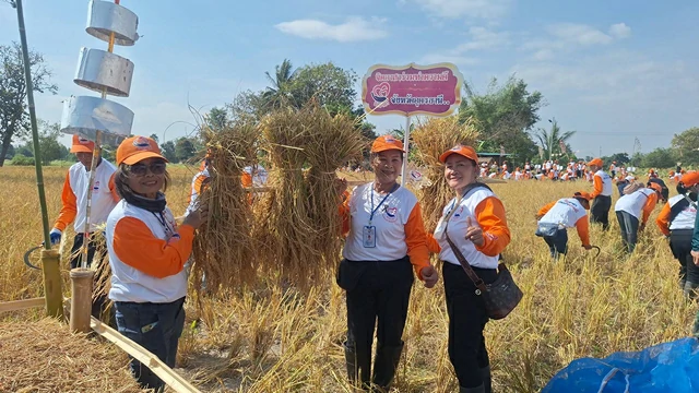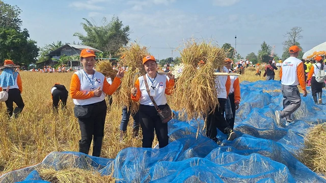 กาฬสินธุ์ คณะทำงานจิตอาสาลงแขกเกี่ยวข้าววันพ่อ สืบสานวิถีเกษตรไทย น้อมรำลึกในพระมหากรุณาธิคุณ ร.9