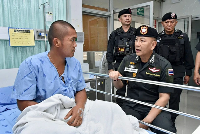 ผบ.ตร.ลงพื้นที่อุบลราชธานี ติดตามสถานการณ์ชายแดนไทย – กัมพูชา เยี่ยม 6 ตำรวจบาดเจ็บ ปลุกขวัญ ตชด. สนับสนุนยุทโธปกรณ์เสริมทัพแนวหน้า กำชับดูแล รร.ตชด ย้ำเข้มพิทักษ์ส่วนหลังคุ้มภัยประชาชน เผย 2 ตชด.เจ็บจากปะทะขอกลับไปสู้ต่อทันที