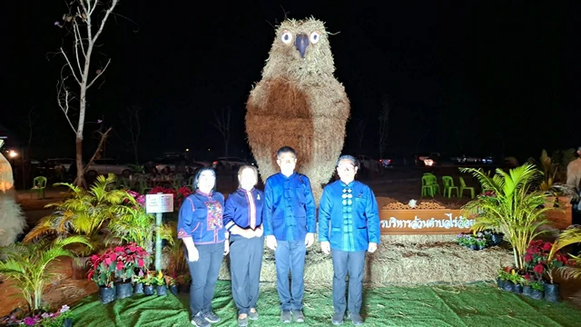 ซึ่งในปีนี้ได้มีการจัดประกวดการตกแต่งฟางข้าวเป็นรูปต่างๆ ซึ่งแต่ละหน่วยงานองค์กรต่างๆได้ระดมพลังนำฟางข้าวมาสร้างสรรค์ผลงานโชว์ได้อย่างโดดเด่น มีทั้งนำฟางมามัดทำเป็นรูป เต่า หมี เสือโคร่ง นกยูง นกแก้ว ช้าง ม้า วัว ควาย รวมถึงแรดตัวโต เป็นต้น