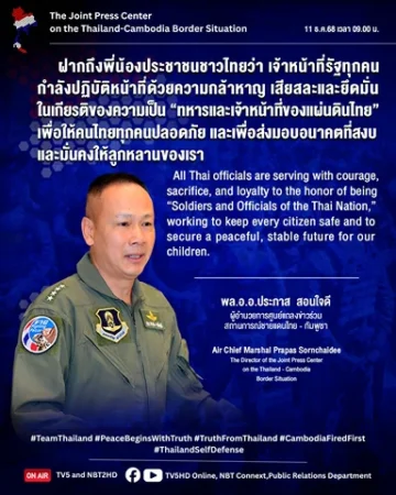 พลอากาศเอก ประภาส สอนใจดี ผู้อำนวยการศูนย์แถลงข่าวร่วมสถานการณ์ชายแดนไทย – กัมพูชา