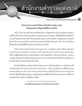 สำนักงานตำรวจแห่งชาติยืนยันฝ่ายไทยมีความพร้อม 100% รับคนไทยกลับจากกัมพูชาทันทีที่ประสานสำเร็จ