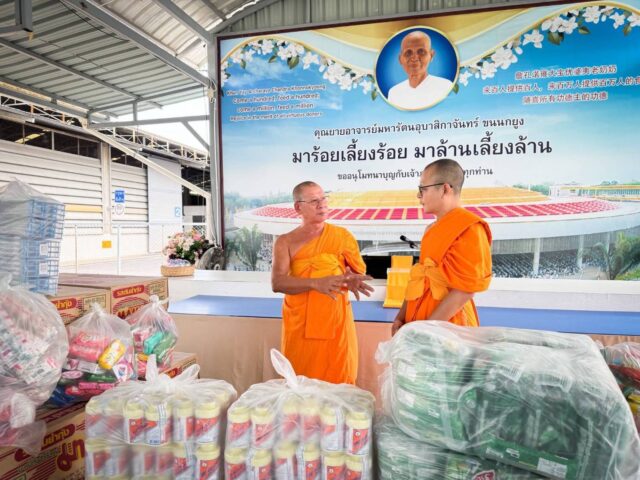เมื่อวันที่ 14 ธันวาคม 2568 ที่อาคารครัว 71 ปี วัดพระธรรมกาย ตำบลคลองสาม อำเภอคลองหลวง จังหวัดปทุมธานี พระครูปลัดรัตนวีรวัฒน์ (รังสฤษดิ์ อิทฺธิจินฺตโก) เจ้าอาวาสวัดพระธรรมกาย มอบหมายให้ พระมหานพพร ปุญฺญชโย ป.ธ.9 ผู้ช่วยเจ้าอาวาสวัดพระธรรมกาย และพระครูสมุห์ สมชาย วํสธีโร ผู้แทนมูลนิธิธรรมกาย มอบเครื่องอุปโภคบริโภคที่จำเป็นเพื่อให้ความช่วยเหลือเบื้องต้นแก่ประชาชนผู้อพยพจากเหตุปะทะกันตามแนวชายแดนไทย-กัมพูชา ในพื้นที่อำเภออรัญประเทศ จังหวัดสระแก้ว โดยมี พระประจักษ์ ชยมงฺคโล ประธานส่งเสริมศีลธรรมจังหวัดสระแก้ว เป็นผู้แทนรับมอบ