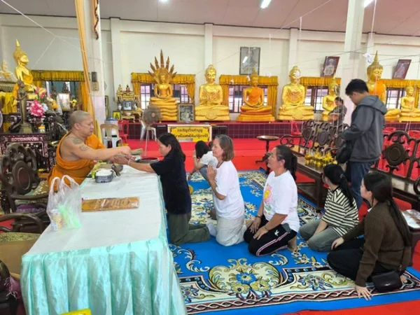 นครนายก – นักท่องเที่ยวสายมูให้ความศรัทธาเดินทางเข้าพิธีนอนโลงศพวัดหลวงพ่อปากแดงจังหวัดนครนายก