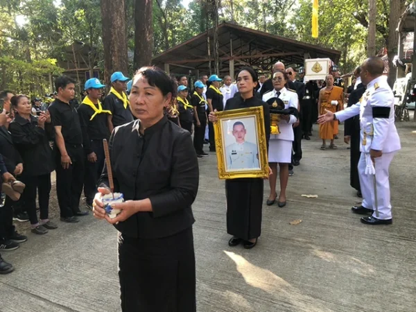 โดยเฉพาะนางรวีวรรณ บุนนาค อายุ 44 ภรรยาหมู่ตี๋ ลูกสาววัย 8 ขวบ และลูกชายวัย 6 ขวบ และแม่ของส.อ.อภิสิทธิ์ ซึ่งร้องไห้ที่ต้องสูญเสียบุคคลอันเป็นที่รักอย่างกระทันหัน แต่ทุกคนก็มีความภาคภูมิใจที่หมู่ตี๋เสียสละชีวิตเพื่อชาติโดยมีผู้บังคับบัญชา ญาติ ส่วนราชการ ผู้นำท้องถิ่น ผู้นำชุมชน และประชาชนร่วมพิธี