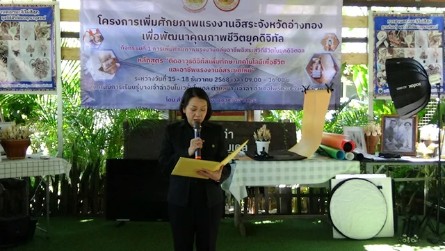 เมื่อเวลา 10.00 น.ของวันนี้(18ธค.68) ที่ ศูนย์การเรียนรู้บางเจ้าฉ่าอินโนเวชั่นโมเดล ตำบลบางเจ้าฉ่า อำเภอโพธิ์ทอง จังหวัดอ่างทอง นายไพบูลย์ ศุภบุญ รองผู้ว่าราชการจังหวัดอ่างทอง เป็นประธานปิดการอบรมโครงการเพิ่มศักยภาพแรงงานอิสระจังหวัดอ่างทอง เพื่อพัฒนาคุณภาพชีวิตยุคดิจิทัล หลักสูตร “ติดอาวุธดิจิทัลเพิ่มทักษะเทคโนโลยีเพื่อชีวิตและอาชีพแรงงานอิสระยุคใหม่”แก่แรงงานอิสระพร้อมเกษตรกรที่มีสินค้าพร้อมจำหน่าย โดยใช้ระบบดิจิทัลผ่านทาง AI ในการจำหน่ายสินค้า ซึ่งทางมหาวิทยาลัยเทคโนโลยีราชมงคลธัญบุรี(คลอง6)โดยมีผศ.ดร.กัญญาณัฐ เปลวเฟื่อง อาจารย์ /นักวิจัยด้านนวัตกรรมสังคม สาขาครีเอทีฟมีเดีย /ผู้ช่วยคณบดี ด้านการพัฒนาความเป็นเลิศ คณะเทคโนโลยีสื่อสารมวลชน เป็นวิทยากรให้ความรู้