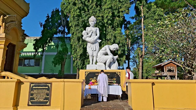 ผู้สื่อข่าวรายงานว่า ที่พิพิธภัณฑ์เมืองลับแล อ.ลับแล จ.อุตรดิตถ์ ซึ่งตั้งอยู่บริเวณซุ้มประตูเมืองลับแล รศ.ดร.ทักษิณาร์ ศรุติสุต นายกเทศมนตรีตำบลศรีพนมมาศ พร้อมทีมผู้บริหาร ข้าราชการ พนักงาน และพี่น้องประชาชนชาวลับแล เชิญพราหมณ์ทำพิธีบวงสรวง “ประติมากรรมแม่ม่ายเมืองลับแล และ ศาลปู่ ย่า ขมิ้นทองคำ” ซึ่งอยู่ด้านข้างซุ้มประตูเมืองลับแล เป็นรูปหญิงสาวอุ้มลูกน้อย ข้าง ๆ มีสามีนั่งคอตก ในมือถือย่ามใส่ขมิ้นบริเวณฐานจารึกข้อความ “ขอเพียงสัจจะวาจา” ที่แสดงถึงตำนานของเมืองลับแล ที่เล่าถึงแม่หม้ายผู้ที่ยอมเสียสละ เพื่อรักษาสัจจะวาจาที่เป็นกฎของเมืองว่า “เมืองลับแลนี้ห้ามพูดโกหก”
