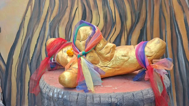 โดยที่ท้ายถ้ำแห่งนี้ ได้ตั้ง “ศาลปู่ย่าขมิ้นทองคำ และ รูปปั้นขมิ้นทองคำขนาด ใหญ่” ได้ทำพิธีบวงสรวง เพื่อให้เกิดสิริมงคลต่อประชาชนคนลับแล และเพื่อบอกกล่าวศาลปู่ย่าขมิ้น ศาลพระภูมิเจ้าที่ เนื่องด้วยวันที่ 18-20 ธันวาคม นี้ เทศบาลตำบลศรีพนมมาศ ร่วมกับ ททท.(ศูนย์ประสานงานการท่องเที่ยวจังหวัดอุตรดิตถ์) กำหนดจัดงาน “เล่าขาน ตำนานเมืองลับแล ลานวัฒนธรรม 8 วิถี พิพิธภัณฑ์เมืองลับแล” ขึ้นที่ พิพิธภัณฑ์เมืองลับแล อยู่บริเวณหน้าซุ้มประตูเมืองลับแล แหล่งท่องเที่ยวซึ่งเป็นหนึ่งในตำนานของเมืองลับแลที่มีประวัติยาวนาน…