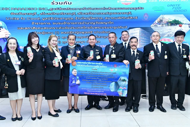 ประกอบด้วย CKK Paradiso INC. ศูนย์ส่งเสริมความรับผิดชอบต่อสังคมของภาคธุรกิจ จังหวัดราชบุรี สโมสรโรตารีราชบุรี สโมสรโรทาแรคท์ชุมชนราชบุรี Unite fo Good มูลนิธิประชานุกูล ร้านใหญ่ไพศาล สมาคมพิทักษ์สิทธิข้าราชการ ชมรมข้าราชการบำนาญวังพญาไท และสภาสังคมสงเคราะห์แห่งประเทศไทยในพระบรมราชูปถัมภ์ มอบน้ำมะพร้าวกระป๋อง จำนวน 12,138 กระป๋อง เพื่อนำไปมอบให้แก่ประชาชนที่ประสบอุทกภัยในพื้นที่จังหวัดภาคใต้