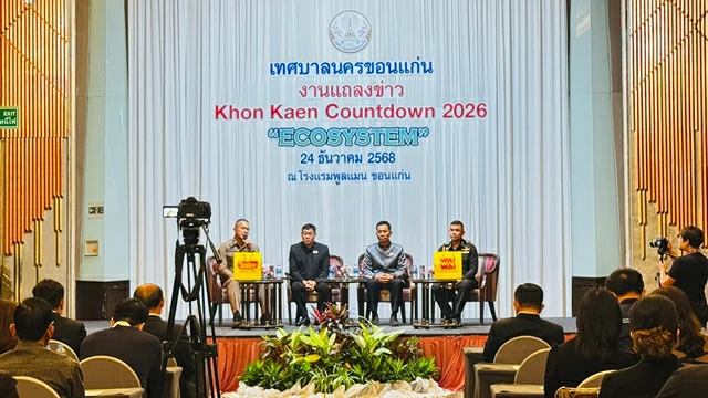 เมื่อเวลา 10.30 น. วันที่ 24 ธันวาคม พ.ศ. 2568 ที่ ห้องออคิด 1 โรงแรมพลูแมน ขอนแก่น ราชา ออคิด เทศบาลนครขอนแก่น นายพันธ์เทพ เสาโกศล รองผู้ว่าราชการจังหวัดขอนแก่น เป็นประธานในพิธีแลงข่าวกิจกรรมส่งท้ายปีเก่าต้อนรับปีใหม่ งานขอนแก่นเคาท์ดาวน์ 2026 “ECOSYSTEM” พร้อมเสริมความสิริมงคลในพิธีทำบุญตักบาตรวันขึ้นปีใหม่ โดยมี นายประสิทธิ์ ทองแท่งไทย นายกเทศมนตรีเทศบาลนครขอนแก่น พร้อมด้วยพันเอก สหภาพ ปุตรลา รองเสนาธิการ มณฑลทหารบกที่ 23 , พ.ต.อ.ธนาวัชร ดีบุญมี ณ ชุมแพ รองผู้บังคับการตำรวจภูธรจังหวัดขอนแก่น ร่วมเป็นผู้แถลงข่าวในครั้งนี้ด้วย ท่ามกลางแขกผู้มีเกียรติและพี่น้องสื่อมวลชนที่มาร่วมงาน