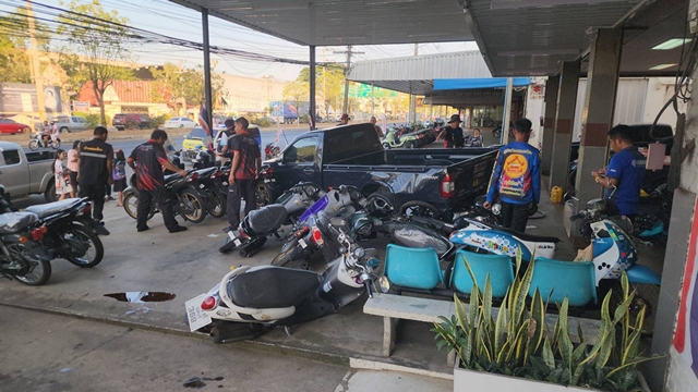 ที่เกิดเหตุเป็นบริเวณหน้าร้านจำหน่ายรถจักรยานยนต์”พี เอส ลีสซิ่ง”ในเขตเทศบาลประโคนชัย พบรถจักรยานยนต์ยี่ห้อฮอนด้าคลิกสีแดง ล้มอยู่ข้างถนนหน้าร้าน มีผู้ได้รับบาดเจ็บ 2 ราย
