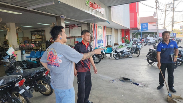 ขณะที่นายพลวัฒน์ อนันตภักดิ์ (เสื้อแดงดำ)อายุ37ปี พนักงานร้าน พีเอส ลีสซิ่ง บอกว่ารถกระบะคันดังกล่าวได้เบิ้ลเครื่องตั้งแต่อยู่ถนนฝั่งตรงข้าม หลังจากนั้นได้กลับรถมา แล้วเบิ้ลเครื่องยนต์เสียงดังสนั่นเพียงเสี้ยววินาที ได้ยินเสียงโครมแล้วรถก็พุ่งเข้ามาในร้าน เบื้องต้นรถใหม่ที่เอามาตั้งโชว์ขายเสียหายไปทั้งหมด 15 คัน