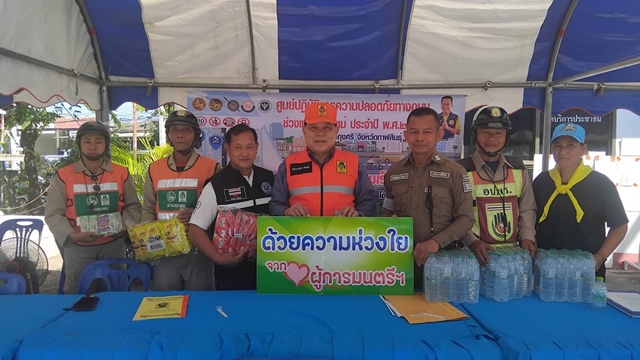 วันที่ 31 ธันวาคม 2568 ที่ศูนย์ปฏิบัติการร่วมป้องกันและลดอุบัติเหตุทางถนนในช่วงเทศกาลปีใหม่ 2569 หน้าเทศบาลตำบลบัวบาน อ.ยางตลาด จ.กาฬสินธุ์ พล.ต.ต.มนตรี จรัลพงศ์ หรือ “ผู้การมนตรี” อดีตผบก.ภ.จว.กาฬสินธุ์ ผู้ทรงคุณวุฒิด้านความปลอดภัยทางถนนสำนักงานปภ.กาฬสินธุ์ และประธานกรรมการสันนิบาตสหกรณ์ จ.กาฬสินธุ์ พร้อมคณะนำเครื่องอุปโภค บริโภค อาหาร เครื่องดื่ม ที่ได้นำเงินส่วนตัวจัดซื้อ และได้รับบริจาคจากผู้มีจิตศรัทธาเป็นสะพานบุญมอบให้กับเจ้าหน้าที่ประจำศูนย์บริการประชาชนช่วงเทศกาลปีใหม่ 2569