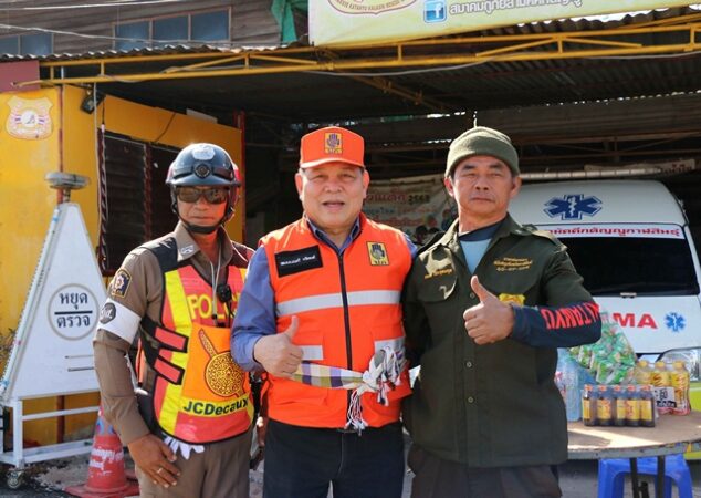 นอกจากนี้ยังเดินทางไปมอบให้กับเจ้าหน้าที่ที่ปฏิบัติงานประจำศูนย์ปฏิบัติการป้องกันและลดอุบัติเหตุทางถนนในช่วงเทศกาลปีใหม่ 2568 ถนนสายกาฬสินธุ์-ขอนแก่น บริเวณป้อมตำรวจตำบลหัวนาคำ อ.ยางตลาด และเจ้าหน้าที่ศูนย์บริการประชาชนในพื้นที่ใน อ.ห้วยเม็ก โดยมีพ.ต.อ.นิติธร ประพิณ ผกก.สภ.ห้วยเม็ก พร้อมเจ้าหน้าที่ร่วมรับมอบ และจะเดินสายไปมอบให้ครบทั้ง 18 อำเภอ พร้อมขอขอบคุณ และให้กำลังใจเจ้าหน้าที่ปฏิบัติงานอย่างเข็มแข็งตามมาตรการ 10 ข้อหาหลักอย่างเคร่งครัดตามนโยบายของนายสุวรรธณ์ เข็มธนเพ็ชร ผู้ว่าราชการ จ.กาฬสินธุ์
