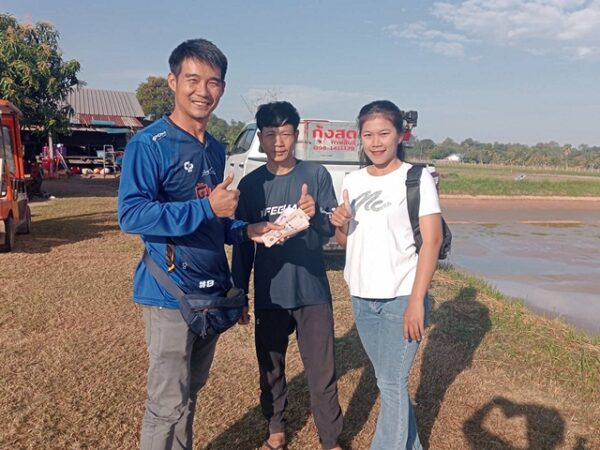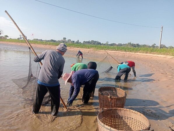 นายณัฐวุฒิ วิริยสถิตย์กุล อายุ 42 ปี อยู่บ้านเลขที่ 409 หมู่ 4 เจ้าของศิริวรรณฟาร์มกุ้ง กล่าวว่า การจับกุ้งก้ามกรามจำหน่ายในช่วงปลายปีนี้ เริ่มเปิดตลาดมาตั้งแต่ต้นเดือน พ.ย.-ธ.ค.เป็นต้นมา จากผลดีของโครงการคนละครึ่ง ทำให้ลูกค้ามีกำลังซื้อกุ้งก้ามกรามไปบริโภค และต่อเนื่องมาถึงช่วงเทศาลส่งท้ายปีเก่าต้อนรับปีใหม่ สำหรับตนมีพื้นที่เลี้ยงกุ้งจำนวน 20 ไร่ ทำการเลี้ยงหลายรุ่นเพื่อป้องกันปัญหากุ้งขาดแคลน และให้เกิดความต่อเนื่อง เพียงพอต่อความต้องการของพ่อค้าคนกลาง ที่นำรถมาขนส่งกุ้งไปเสิร์ฟลูกค้าตามร้านอาหารทั่วไปในภาคตะวันออกเฉียงเหนือ รวมทั้ง สปป.ลาวด้วย