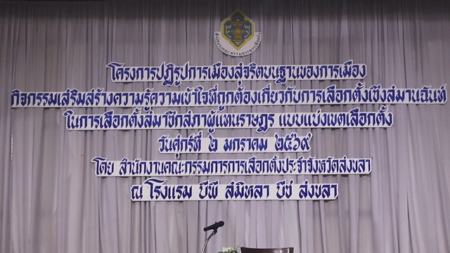 สงขลา-กกต.สงขลา จัดโครงการปฏิรูปการเมืองสุจริตบนฐานของการเมือง เสริมสร้างความรู้การเลือกตั้งเชิงสมานฉันท์