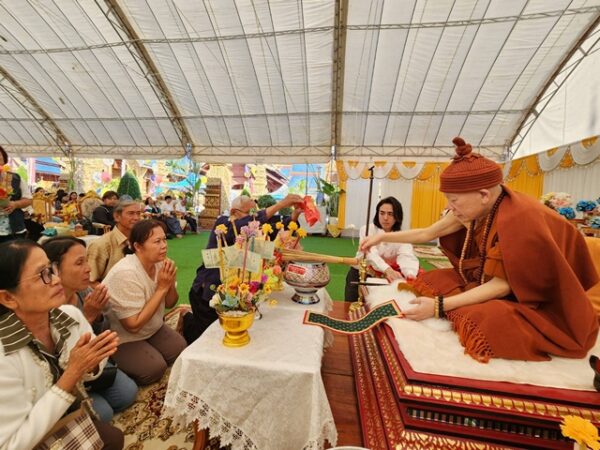 พิธีดังกล่าวจัดขึ้นเพื่อความเป็นสิริมงคลแก่ผู้เข้าร่วมพิธีโดยมีคณะสงฆ์ประกอบพิธีเจริญพระพุทธมนต์ท่ามกลางบรรยากาศแห่งศรัทธาและความสงบเรียบร้อย