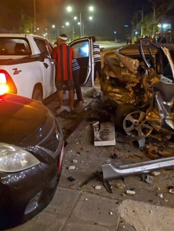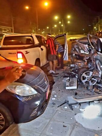 เมื่อเวลาประมาณ 03.20 น. วันที่ 1 มกราคม 2569 พ.ต.ท.ณรงค์ฤทธิ์ สุวะศรี สว.(สอบสวน) สภ.เมืองมุกดาหาร ได้รับแจ้งจากศูนย์วิทยุ สภ.เมืองมุกดาหาร ว่ามีอุบัติเหตุรถยนต์เฉี่ยวชนกันหลายคัน บริเวณทางโค้งหน้าร้านข้าวต้มกุ้ย “จงเจริญ” ถนนมุกดาหาร–ดอนตาล ตำบลศรีบุญเรือง อำเภอเมืองมุกดาหาร จังหวัดมุกดาหาร จึงรุดไปตรวจสอบที่เกิดเหตุ