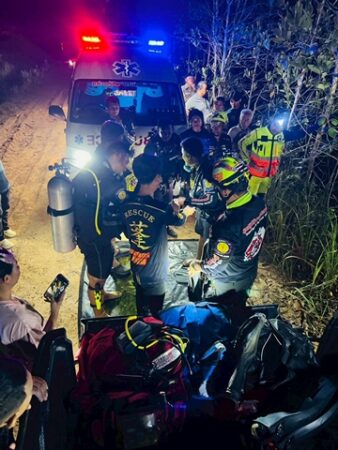 โดยเหตุดังกล่าวขึ้นเมื่อช่วงเย็นของวานนี้ ทางผู้เสียชีวิตพร้อมด้วยครอบครัว ซึ่งรวมถึงน้องสาวอายุ 20 ปี ได้เดินทางมาที่สระน้ำดังกล่าว โดยครอบครัวนี้มีอาชีพรับจ้างตัดปาล์มน้ำมัน เมื่อวานหยุดตัดช่วงปีใหม่ ทราบว่าได้มาหาเพื่อนำไปกินเลี้ยงปีใหม่กัน ระหว่างที่กำลังหาปลาหาหอย 2 พี่น้องได้ชักชวนกันว่ายน้ำแข่งกันจากสระอีกด้านไปอีกด้าน ซึ่งมีระยะประมาณ 40 เมตร ปรากฏว่าคนพี่ว่ายไปไม่ไหวเกิดจมน้ำหายไปกลางสระ ทางครอบครัวนี้จึงรีบแจ้งเจ้าหน้าที่มาช่วยงมหาแต่หาไม่เจอ จนวันนี้ได้ระดมกำลังออกค้นหาใหม่ และเจอร่างในที่สุด …