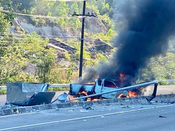 ตราด-อ.คลองใหญ่ จ.ตราด หนุ่มวัย 36 หลับในกระบะชนยูเทิร์นก่อนเกิดไฟลุกท่วมทั้งคัน