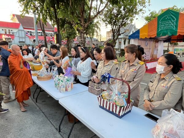 จากนั้น นาวาเอกอนุศักดิ์ นาคทิม นายกเทศมนตรีตำบลบางเมือง นำคณะผู้บริหาร ประธานสภาฯ รองประธานสภาฯ สมาชิกสภาเทศบาลฯ หัวหน้าส่วนราชการ ผอ.กอง เจ้าหน้าที่กองการศึกษา เจ้าหน้าที่ฝ่ายปกครอง นำโดย กำนันขวัญเรือน นาคทิม กำนันตำบลบางเมือง ผู้ใหญ่บ้าน พนักงาน และประชาชนในเขตพื้นที่ ร่วมทำบุญตักบาตรถวายข้าวสารอาหารแห้งแด่พระภิกษุสงฆ์ จำนวน 9 รูป เพื่อความเป็นสิริมงคล
