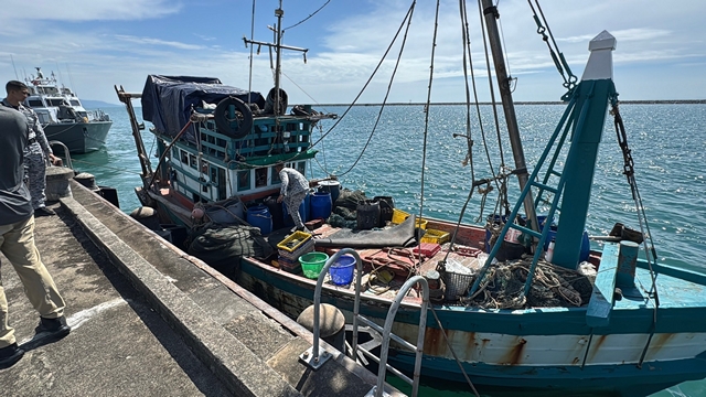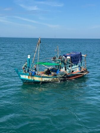 จึงได้เข้าทำการควบคุมเรือพร้อมลูกเรือสัญชาติกัมพูชาดังกล่าว และนำส่ง สภ.คลองใหญ่ เพื่อดำเนินคดีตามกฎหมายในฐานความผิดตามพระราชบัญญัติว่าด้วยสิทธิการประมงในเขตการประมงไทย พ.ศ.2482 พระราชกำหนดการประมง พ.ศ.2558 และการเข้ามาอยู่ในราชอาณาจักรไทยโดยไม่ได้รับอนุญาต ตามพระราชบัญญัติคนเข้าเมือง พ.ศ.2522