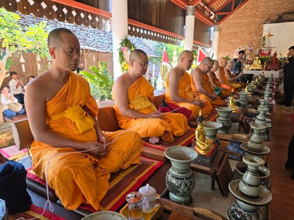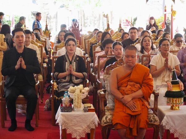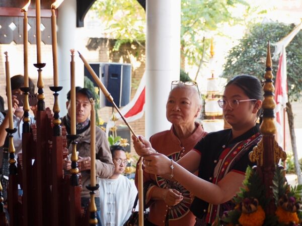 บุตรสาว ตัวแทนหน่วยงานที่เกี่ยวข้อง ผู้มีเกียรติ และพุทธศาสนิกชน เข้าร่วมพิธี ณ วิหารลายคำโบราณ เฉลิมพระเกียรติ วัดยางกวง จังหวัดเชียงใหม่