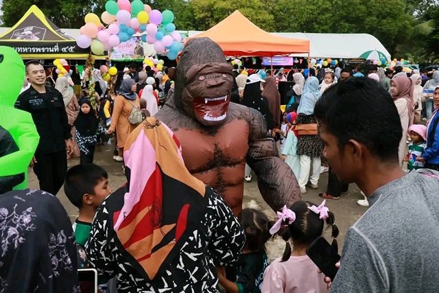 วันนี้ 10 ม.ค.69 เวลา 11.00น. ที่ค่ายจุฬาภรณ์ กรม ร. 3 พล.นย อ.เมือง จ.นราธิวาส บรรยากาศงานวันเด็กแห่งชาติ ประจำปี 2569 ที่ค่ายจุฬาภรณ์ สุดคึกคัก ตั้งแต่ช่วงเช้าถึงเย็น ได้มีผู้ปกครองนำบุตรหลานแห่เที่ยวชมงาน กว่า 100,000 คน เดินทางกันมาอย่างไม่ขาดสาย เพื่อมาร่วมงานวันเด็ก โดยส่วนใหญ่แต่งกายด้วยชุดแฟนซี เช่น ชุดทหาร และชุดคอสเพลย์การ์ตูนต่างๆ โดย นาวาเอก บัญญัติ วงศ์จำปาผู้บังคับหน่วยเฉพาะนาวิกโยธิน กองทัพเรือ และ นายบุญช่วย หอมยามเย็น ผู้ว่าราชการจังหวัดนราธิวาส พลตำรวจตรีประยงค์ โคตรสาขา ผู้บังคับการตำรวจภูธรจังหวัดนราธิวาส รองบังคับหน่วยเฉพาะกิจ ได้เดินทางมาเป็นประธานเปิดกิจกรรมวันเด็กแห่งชาติประจำปี 2569 ตลอดจนหน่วยงานที่เกี่ยวข้อง และผู้ปกครอง น้องๆเยาวชนใกล้เคียงและต่างพื้นที่ ที่ได้มาร่วมกิจกรรมเป็นจำนวนมากหน้าเวทีกลางการแสดงของค่ายจุฬาภรณ์ จนมองได้อย่างชัดเจนว่าการจัดงานครั้งนี้ บรรยากาศเต็มไปด้วยความสุข สนุกสนาน และอบอวลไปด้วยรอยยิ้ม