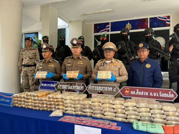 จังหวัดร้อยเอ็ดสนธิกำลังฝ่ายปกครอง ตำรวจ และทหาร แถลงจับกุมเครือข่ายลักลอบลำเลียงยาเสพติดรายใหญ่ หลังขับรถแหกด่านหนีการไล่ล่าข้ามอำเภอจนเสียหลักพุ่งตกไร่อ้อยที่อำเภอโพนทอง ยึดยาบ้าของกลาง 600,000 เม็ด พร้อมผู้ต้องหา 2 ราย สารภาพรับจ้างขนจากชายแดนริมโขงมุ่งหน้าส่งลูกค้าพื้นที่กาฬสินธุ์และขอนแก่น