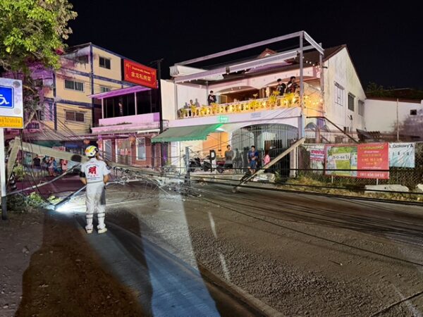 พัทยา ปิ๊กอัพหลุดโค้งชนเสาไฟฟ้าหักโค่น 3 ต้น ขวางถนน จราจรอัมพาต