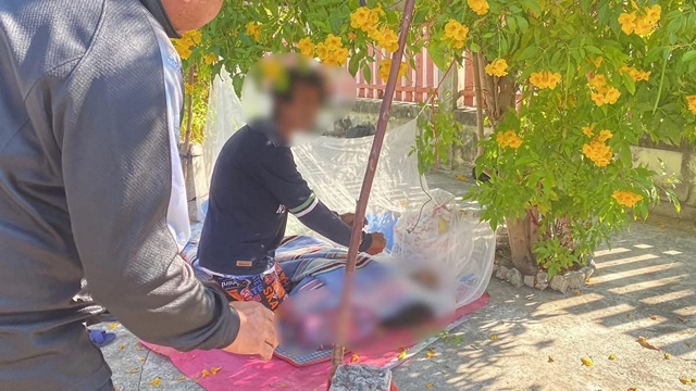 สภาพศพผู้ตาย นอนหงายอยู่ใต้ต้นไม้ นอกตัวบ้าน ตามใบหน้ามีบาดแผล และ ทราบชื่อต่อมา คือ นางฉลวย (สงวนนามสกุล) อายุ 57 ปี มารดา ของผู้ก่อเหตุ เจ้าหน้าที่ตำรวจพร้อมแพทย์เวรร่วมชันสูตร ก่อนจะมอบร่างผู้เสียชีวิตให้ญาตินำประกอบพิธีทางศาสนาต่อไป