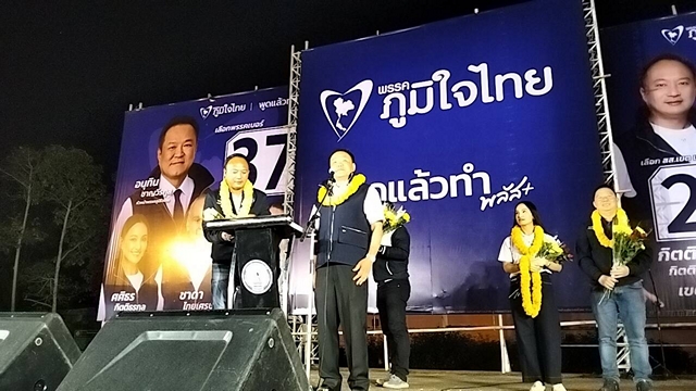 บนเวทีปราศรัยใหญ่หน้าเทศบาลตำบลคลองท่อมใต้ นายอนุทินโชว์พลังผู้นำ ปลุกใจชาวกระบี่ให้เลือกพรรคภูมิใจไทยยกจังหวัด เพื่อส่งให้ตนเองก้าวเข้าสู่ตำแหน่งนายกรัฐมนตรี พร้อมประกาศกร้าวว่า “หากเลือกภูมิใจไทยยกจังหวัด นายกฯ คนนี้จะเป็นเด็กของคนกระบี่ พร้อมรับใช้และสั่งการได้ทันที”