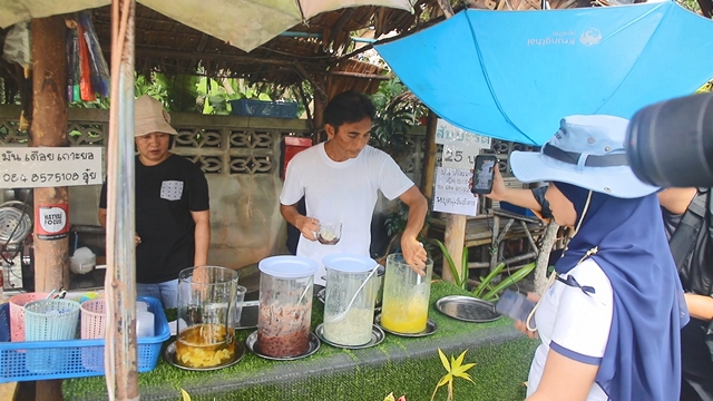 ช่วงท้ายของกิจกรรม นักท่องเที่ยวได้แวะชิม “มันเดือย” ในสวนสวา ตำบลเกาะยอ ซึ่งเป็นการแลกเปลี่ยนวัฒนธรรมอาหารจากหาดใหญ่สู่เกาะยอ สร้างประสบการณ์ท่องเที่ยวที่เชื่อมโยงประวัติศาสตร์ ศรัทธา และวิถีชีวิตของชุมชนเข้าด้วยกันอย่างกลมกลืน แนวคิดการท่องเที่ยวเชิงวัฒนธรรมที่เปิดโอกาสให้ผู้มาเยือนได้สัมผัสเสน่ห์ของเกาะยออย่างใกล้ชิดและมีความหมาย ก่อนจะเดินทางไปชมสวนลุงวี” แหล่งเรียนรู้วิถีสวนสมรมของชุมชน ที่เปิดพื้นที่ให้ทั้งชาวบ้านและนักท่องเที่ยวได้ศึกษาเรียนรู้พันธุ์ไม้ท้องถิ่นและภูมิปัญญาชุมชนอย่างใกล้ชิด