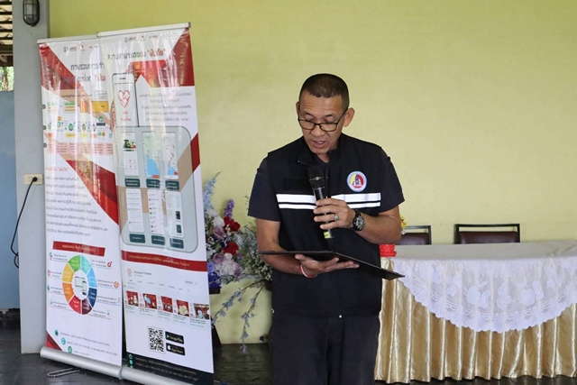 การบรรยายจากวิทยากรสถานีกาชาดเทพรัตน์ที่ 13 จังหวัดตาก ในเรื่องการใช้งานเบื้องต้น การแจ้งเหตุ และการขอความช่วยเหลือผ่าน “แอปพลิเคชันพ้นภัย”