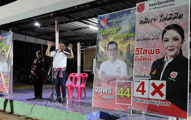โดยการปราศรัยของนายประภาส แม่ทัพภาคอีสานพรรคโอกาสใหม่ และนางวิไลพร พรรคโอกาสใหม่ เบอร์ 4 ได้ประกาศสโลแกนย้ำแบบหนักแน่นว่า “มีเราไม่มีมืด” มีพรรโอกาสใหม่ นำโดยนายจตุพร บุรุษพัฒน์ หัวหน้าพรรคโอกาสใหม่ และมี “วิไลพร นิพัฒน์” มีแสงสว่างที่นั้น พร้อมกับปราศรัยชูนโยบายโดนใจ