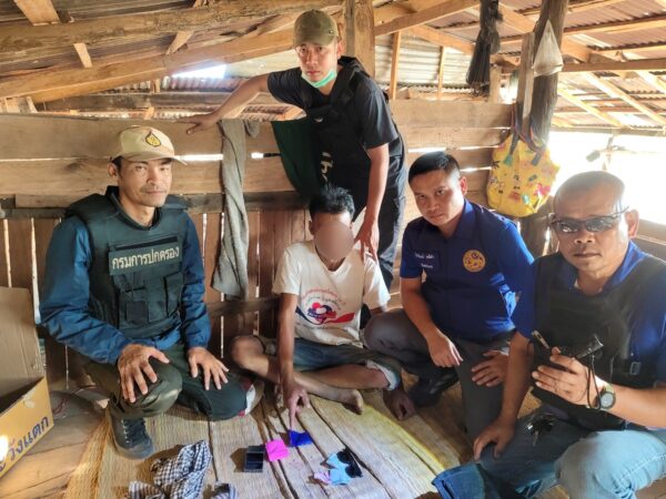 มุกดาหาร -ปค.นิคมคำสร้อย – สภ.นาอุดม บุกจับหนุ่มซุกยาบ้ากลางกระท่อมนา รับสารภาพทั้งจำหน่าย–เสพ ส่งดำเนินคดีทันที