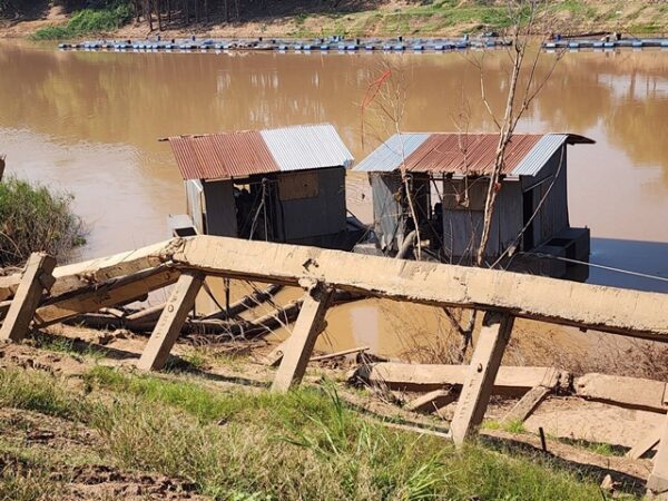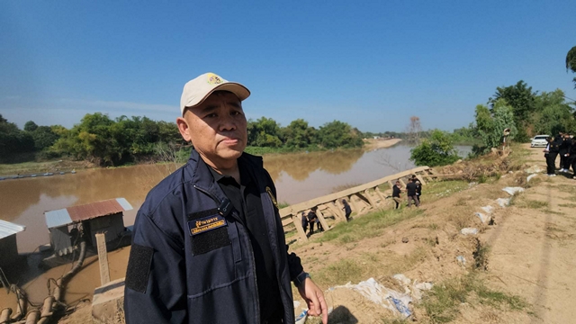 อุปกรณ์ไม่ครบตามแบบ: ตรวจสอบพื้นที่พบการติดตั้ง “สเตย์” ยึดเสาเข็มเพียง 4 จุด จากที่กำหนดไว้ 11 จุด ทำให้โครงสร้างขาดแรงยึดเหนี่ยวเมื่อเจอน้ำกัดเซาะ ผู้รับจ้าง อ้าง “อุทกภัย” ทำพัง