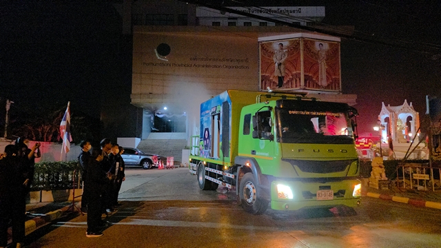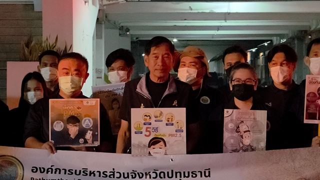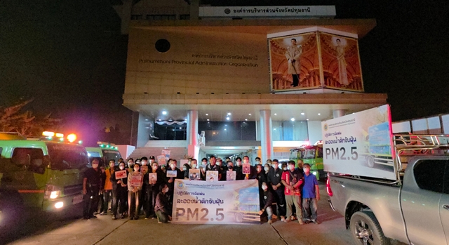 ที่ สำนักงานองค์การบริหารส่วนจังหวัดปทุมธานี พลตำรวจโท คำรณวิทย์ ธูปกระจ่าง นายกองค์การบริหารส่วนจังหวัดปทุมธานี นำทีมเจ้าหน้าที่ อบจ. ปล่อยแถวรณรงค์มาตรการป้องกันฝุ่นละอองขนาดเล็ก (PM 2.5) หลังพบว่าหลายพื้นที่ได้รับผลกระทบจากกลุ่มควันและฝุ่นละอองที่สะสมตัวหนาแน่น โดยหลายพื้นที่ที่ตรวจพบค่าฝุ่นพุ่งสูงเกินมาตรฐาน เกินระดับ 70 ไมโครกรัมต่อลูกบาศก์เมตร อำเภอคลองหลวง