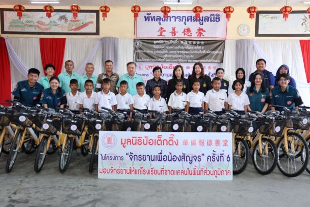 มูลนิธิป่อเต็กตึ๊ง หนุนการศึกษาเยาวชน 100 โรงเรียนในพื้นที่ชนบทภาคกลาง-ใต้ รวม 20 จังหวัด มอบจักรยาน-อุปกรณ์กีฬา ในโครงการ “จักรยานเพื่อน้องสัญจร” ครั้งที่ 6 รวมมูลค่ากว่า 2.85 ล้านบาท เน้นสร้างชีวิตอย่างยั่งยืน