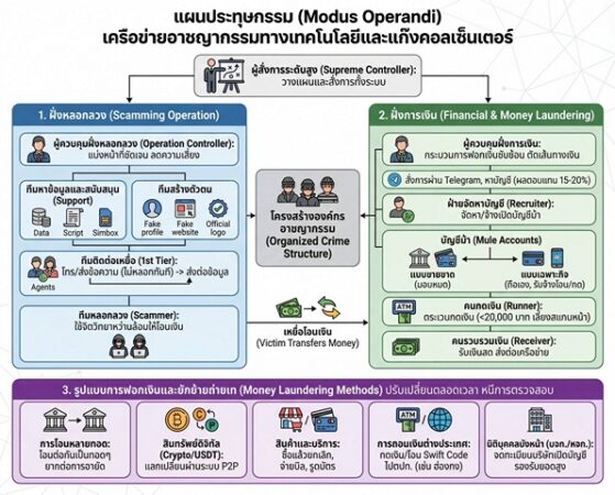 ข้อมูลดังกล่าว มาจากเวทีการประชุม ระหว่างเจ้าหน้าที่ตำรวจศูนย์ต่อต้านการฉ้อโกงออนไลน์ (ACSC) ร่วมกับหน่วยงานที่เกี่ยวข้อง ใน โครงการสัมมนาเชิงปฏิบัติการเพื่อเพิ่มประสิทธิภาพในการปฏิบัติงาน และสัมมนาแลกเปลี่ยนข้อมูล การป้องกันปราบปราม การกระทำความผิดเกี่ยวกับอาชญากรรมทางเทคโนโลยี และการฟอกเงิน ที่เพิ่งจัดขึ้นเมื่อวันที่ 19-20 มกราคม 2569 ที่ อาคารศูนย์ฝึกอบรมพัฒนาบุคลากรและสวัสดิการ สำนักงานตรวจคนเข้าเมือง โดยมีตัวแทนจาก สำนักงานอัยการสูงสุด (อสส.), สำนักงานป้องกันและปราบปรามการฟอกเงิน (ปปง.), ธนาคารแห่งประเทศไทย (ธปท.) ได้เข้าร่วมแลกเปลี่ยนองค์ความรู้ ถ่ายทอดประสบการณ์ พร้อมวางแนวทางร่วมกันในการปฏิบัติงานร่วมระหว่างหน่วยงาน เพื่อพัฒนาประสิทธิภาพการป้องกันและปราบปรามการการกระทำความผิดเกี่ยวกับอาชญากรรมทางเทคโนโลยีและการฟอกเงิน โดยหนึ่งในนั้นคือการเปิดโปง “แผนประทุษกรรมแก๊งคอลเซ็นเตอร์”นี้ และประชาสัมพันธ์ให้ประชาชนรู้เท่าทันเพื่อป้องกันไม่ให้ตกเป็นเหยื่อของขบวนการสแกมเมอร์