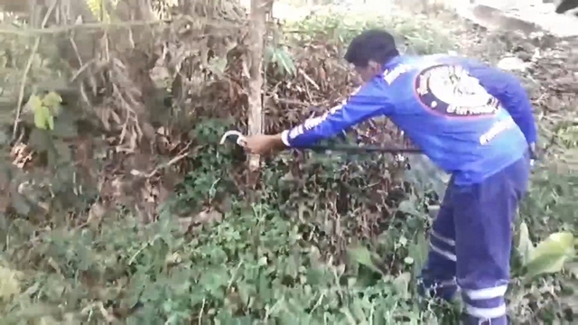 หลังจากที่นายทวีศักดิ์ บุญเศษ เจ้าหน้าที่ทีมปราบอสรพิษอาสาพิทักษ์งู จ.สงขลา ได้รับแจ้ง จึงรีบนำอุปกรณ์ในการจับงูเข้าตรวจสอบทันที