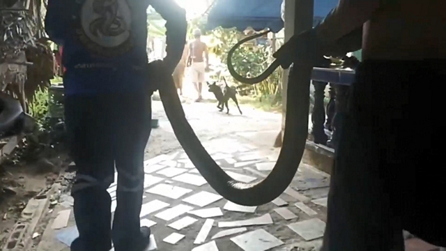 สงขลา-ชาวบ้านผวา สุนัขเห่าไล่จงอางยักษ์ เลื้อยผ่านไปซุกใต้ต้นลูกเงาะ แจ้งทีมปราบอสรพิษมาจับ