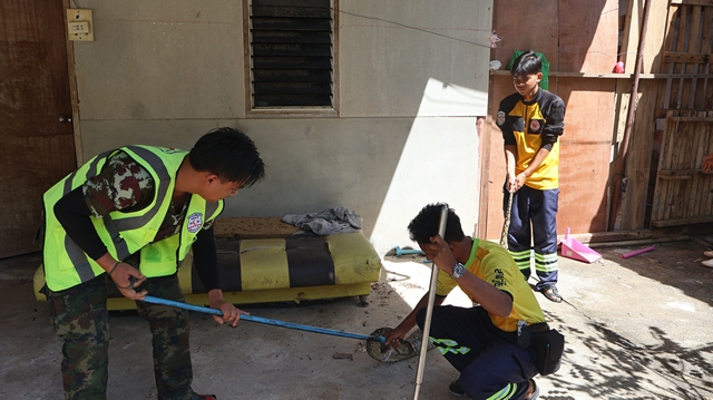 วันที่ 24 ม.ค.69 นายโยธิน ประชามติรัฐ หัวหน้าชุดปฏิบัติการกู้ชีพกู้ภัยมุสลิมเบตง ได้รับแจ้ง มีชาวบ้านขอความช่วยเหลือ ให้ไปช่วยจับงูที่โกดังผลไม้ ชุมชนกาแป๊ะ กม.2 เขตเทศบาลเมืองเบตง อ.เบตง จ.ยะลา ซึ่งอยู่ทางมุ่งหน้าด่านพรมแดนเบตง จึงส่งอาสาสมัครกู้ชีพกู้ภัยมุสลิมเบตง พร้อมนำอุปกรณ์การจับงู เข้าช่วยเหลือ