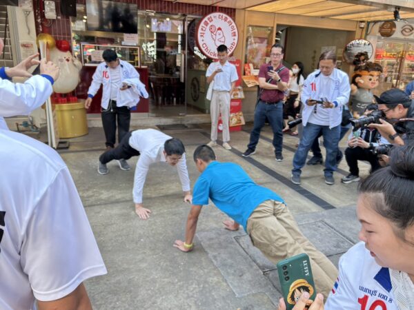นอกจากนี้ นายมงคลกิตติ์ ยังสร้างสีสันให้กับการลงพื้นที่ ด้วยการร่วมทำกิจกรรมวิดพื้นโชว์ความแข็งแรง ท่ามกลางเสียงเชียร์จากผู้สนับสนุน พร้อมเปิดโอกาสให้ประชาชนและแฟนคลับได้ร่วมถ่ายภาพเซลฟี่อย่างเป็นกันเอง ส่งผลให้บรรยากาศเป็นไปด้วยความสนุกสนานและได้รับความสนใจจากผู้ที่สัญจรผ่านไปมาเป็นจำนวนมาก