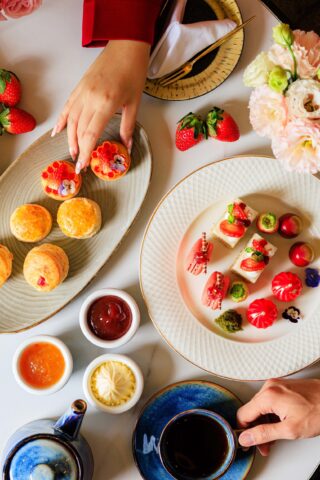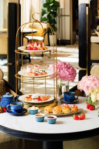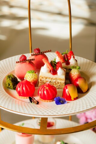 ต่อด้วยเมนูของหวาน ที่รวมถึงขนมโฮมเมดชวนลิ้มลอง เช่น Strawberry Rose ขนมบิสกิตอามาเร็ตโต เสิร์ฟพร้อมซอสสตรอว์เบอร์รีและมูสกุหลาบ, Strawberry Pistachio Short Cake ชอร์ตเค้กสตรอว์เบอร์รีพิสตาชิโอ เสิร์ฟคู่คุกกี้เนยสไตล์ฝรั่งเศสและสตรอว์เบอร์รีสด, และ Strawberry Lemonade Tart ทาร์ตสตรอว์เบอร์รี ผสานรสเลมอนและครีมน้ำผึ้ง ปิดท้ายด้วย Strawberry and Madagascar Vanilla Scones สโคนสตรอว์เบอร์รีและวานิลลามาดากัสการ์ เสิร์ฟพร้อมแยมสตรอว์เบอร์รีโฮมเมดจากผลไม้ท้องถิ่น