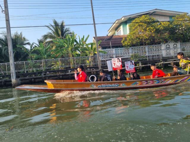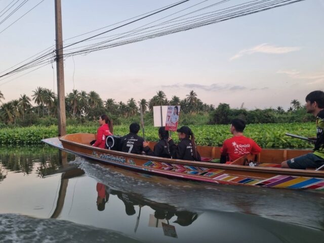 ศึกเลือกตั้งเขต 5 ราชบุรีเดือด 7 พรรคงัดกลยุทธ์หาเสียง “ปวันรัตน์” ลูกสาว สจ.ใหญ่ สาวดำเนินล่องเรือหาคะแนนตลาดน้ำและเกษตรกรในพื้นที่ เข้าถึงชุมชนสองฝั่งคลองประชาชนรับฟังนโยบายอย่างเป็นกันเอง