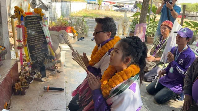 คุณหญิงสุดารัตน์ โฟนอิน ช่วยลูกพรรคสาวสวย อ้อนชาวบ้าน “คิดฮอดหลาย อยากไปกินตำบักหุ่งด้วย” “สุรเดชฯ” ประธานคณะกรรมการยุทธศาสตร์เศรษฐกิจ พรรคไทยสร้าง นำ “ณิชวดี” ผู้สมัคร สส.ขอนแก่น เขต 8 พรรคไทยสร้างไทย ขึ้นรถอีแต๋นหาเสียงกับประชาชนในพื้นที่ โดยเอาฤกษ์เอาชัยด้วยการเข้าสักการะศาลเจ้าพ่อหลักเมือง ศาลเจ้าเมืองมัญจาคีรี และศาลปู่ตาประจำหมู่บ้าน ก่อนปราศรัยหาเสียงกับชาวบ้าน ชูโมเดลเศรษฐกิจให้บ้านเมืองดีขึ้น โดยไม่เพิ่มภาระหนี้ให้กับรัฐบาล