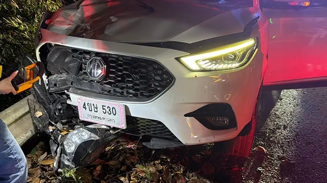 ที่เกิดเหตุเป็นบริเวณไหล่เขา พบรถยนต์เก๋งยี่ห้อเอ็มจี สีขาว หมายเลขทะเบียน 4 ขษ 530 กรุงเทพมหานคร ชนกับรถจักรยานยนต์ซึ่งอัดติดอยู่ใต้ท้องรถ ขณะที่ผู้ขับขี่รถจักรยานยนต์กระเด็นร่วงลงไปในไหล่เขาลึกกว่า 5 เมตร