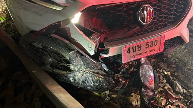 ที่เกิดเหตุเป็นบริเวณไหล่เขา พบรถยนต์เก๋งยี่ห้อเอ็มจี สีขาว หมายเลขทะเบียน 4 ขษ 530 กรุงเทพมหานคร ชนกับรถจักรยานยนต์ซึ่งอัดติดอยู่ใต้ท้องรถ ขณะที่ผู้ขับขี่รถจักรยานยนต์กระเด็นร่วงลงไปในไหล่เขาลึกกว่า 5 เมตร