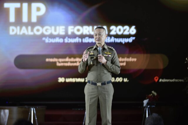 ตามนโยบาย พล.ต.อ.กิตติ์รัฐ พันธุ์เพ็ชร์ ผู้บัญชาการตำรวจแห่งชาติ ให้ความสำคัญและเน้นหนักในเรื่องของการป้องกันปราบปรามการค้ามนุษย์อย่างเด็ดขาด วันนี้ (30 มกราคม 2569) เวลา 10.00 น. พล.ต.อ.ธัชชัย ปิตะนีละบุตร รองผู้บัญชาการตำรวจแห่งชาติ ในฐานะผู้อำนวยการศูนย์ต่อต้านการค้ามนุษย์ สำนักงานตำรวจแห่งชาติ เป็นประธานเปิดงานสัมมนา “TIP Dialogue Forum 2026 : ร่วมคิด ร่วมทำ เมืองไทยไร้ค้ามนุษย์” ดำเนินการโดยศูนย์ต่อต้านการค้ามนุษย์ สำนักงานตำรวจแห่งชาติ โดยมีการเสวนาเพื่อรับฟังปัญหาอุปสรรคและข้อเสนอแนะจากผู้แทนหน่วยงานที่เกี่ยวข้อง อาทิ ผู้แทนจากหน่วยงานต่างๆ ในสังกัดสำนักงานตำรวจแห่งชาติ, ผู้แทนองค์กรต่างๆ เช่น ศูนย์อภิบาลผู้เดินทางทะเล (Stella Maris), The HUG Project, มูลนิธิไอเจเอ็ม (IJM Foundation), U.S. Embassy, Bangkok, กองต่อต้านการค้ามนุษย์ สำนักงานปลัดกระทรวงการพัฒนาสังคมและความมั่นคงของมนุษย์, กระทรวงแรงงาน เป็นต้น ที่เข้าร่วมงาน และร่วมเวทีเสวนา ณ ศูนย์ฝึกอบรมพัฒนาบุคลากรและสวัสดิการ สตม. สำนักงานตำรวจแห่งชาติ