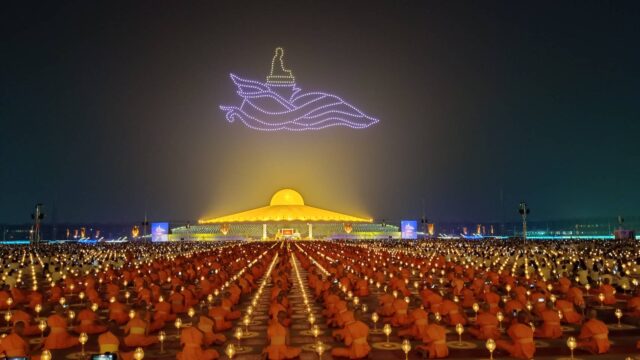 วัดพระธรรมกายจัดใหญ่ ใช้โดรน500ลำแทนจุดพลุลดมลพิษ ส่งท้ายธรรมยาตราปีที่ 14